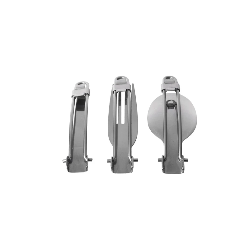 ieses Besteckset zeichnet sich durch ein sehr kleines Packmaß sowie das sehr leichte Gewicht aus. Es ist aus hochwertigem Edelstahl gefertigt und wird in einem praktischen Nylontäschchen geliefert. Die einzelnen Besteckteile sind zusammenklappbar und werden während der Benutzung arretiert. Das ideale Besteckset für den Genuss unterwegs.