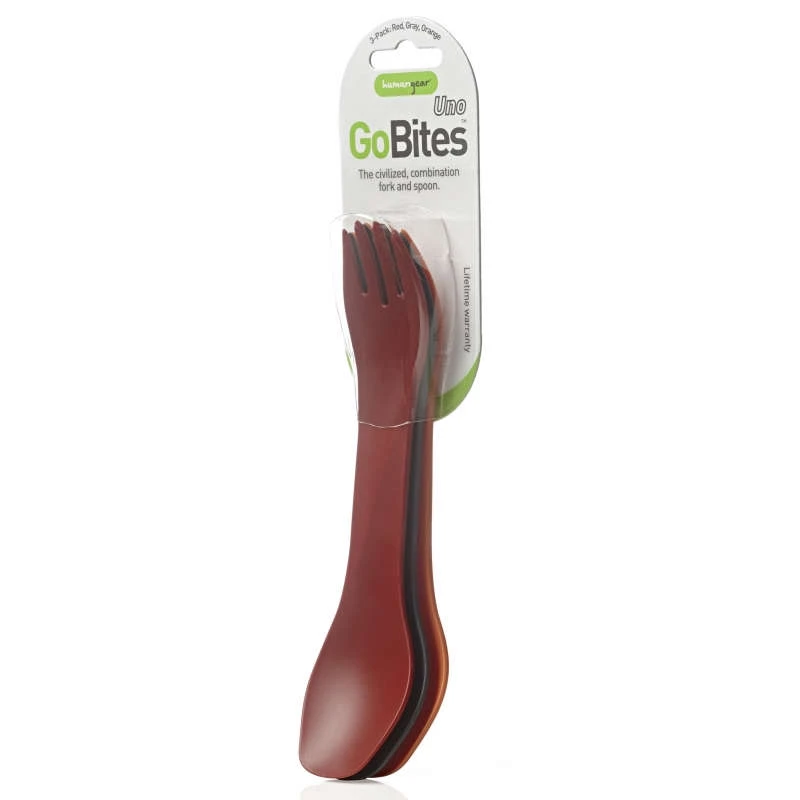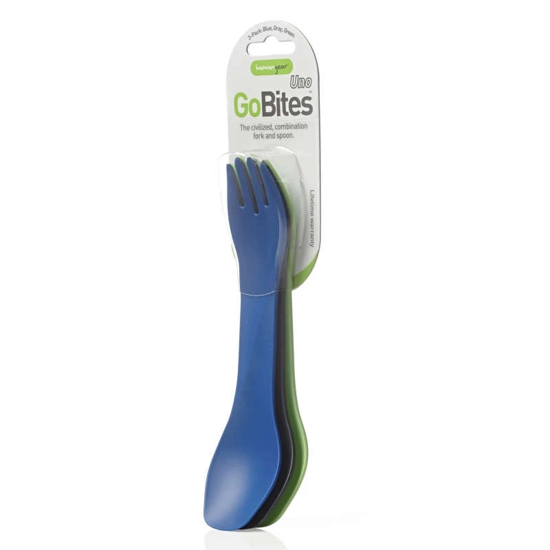 Der humangear Göffel GoBites UNO ist eine hochfunktionelle Gabel-Löffel-Kombination. Beide Enden sind für die jeweilige Funktion optimal Löffelgabelkombination. Der Löffel hat weiche und mundgerechte Kanten. Die Gabel hat Spitzen, mit denen sich auch arbeiten lässt. Auf eine Messerfunktion wurde bewusst verzichtet, um beim Essen keine Gefährdung des Mundbereichs herbeizuführen und ein scharfes Messer ohnehin zu den meisten Standardausrüstungen gehört. Eine Teil-Funktion, z. B. für das Zerteilen von weichen Speisen wie Kartoffeln oder Spiegeleiern, bietet die Gabelseite an. Liegt sehr gut in der Hand.