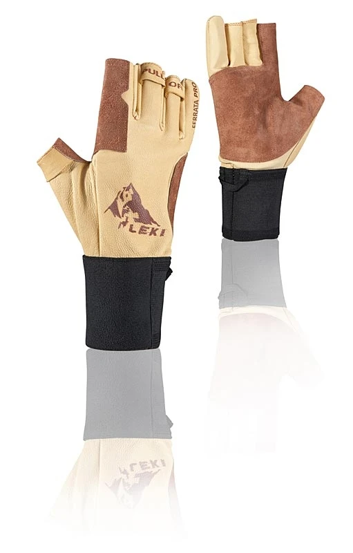 Der Klettersteighandschuh Ferrata Pro von Leki ist ein spezieller Klettersteighandschuh gegen Verletzungen der Hände an ausgefransten Stahlseilen und scharfen Felsen. Aus weichem Leder gefertigt.