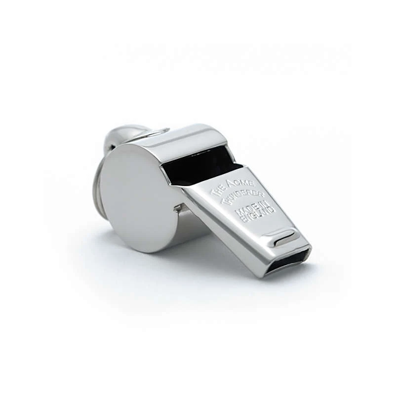 Die Thunderer Signalpfeife von ACME ist eine der am meisten eingesetzten Schiedsrichterpfeifen der Welt – unter anderem dabei in der NHL, NBA und UEFA. Aus solidem Messing hergestellt und mit der nichtklebenden Kugel erzeugen Sie einen sonoren Sound, der sich auch gegen starke Hintergrundgeräusche und Wind durchsetzt. Deshalb auch sehr oft am Strand (Baywatch) und bei der Rettung eingesetzt. Ebenso ideal als Outdoor-Kommunikationsmittel.