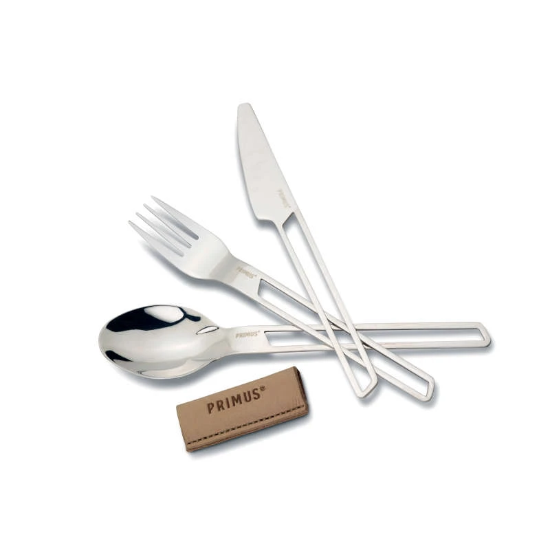 Das Campfire von Primus ist ein hochwertiges Edelstahl Reisebesteck bestehend aus Löffel, Gabel und Messer. Das Lederformstück hält das Set klapperfrei und sicher zusammen.