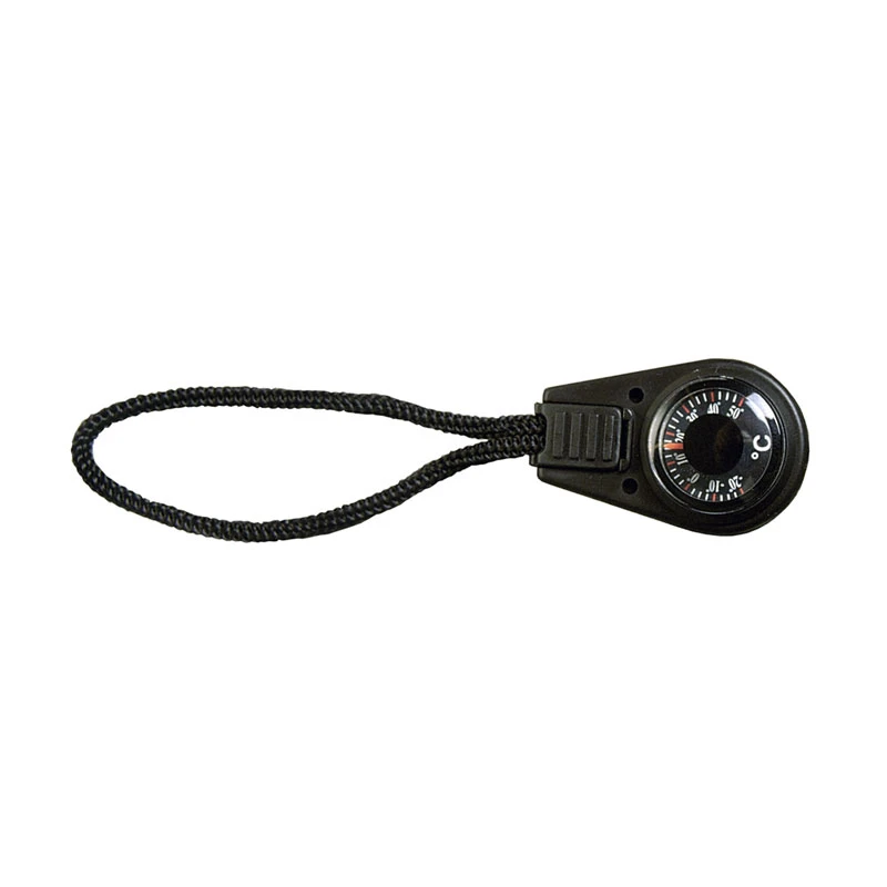 Die informative Reißverschlussverlängerung. Das Thermometer zeigt Ihnen die Temperatur. Beendet ebenso nerviges Gefummel an zu kurzen Zippern. Kann zum Einfädeln und zum Justieren der Schnurlänge geöffnet werden.