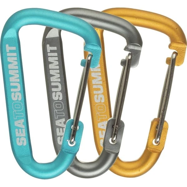 Drei kleine haltbare Aluminium Karabiner für Material oder den Schlüsselbund. Das praktische Dreierset sichert Brille, Handy und andere Ausrüstung vor Verlusten.