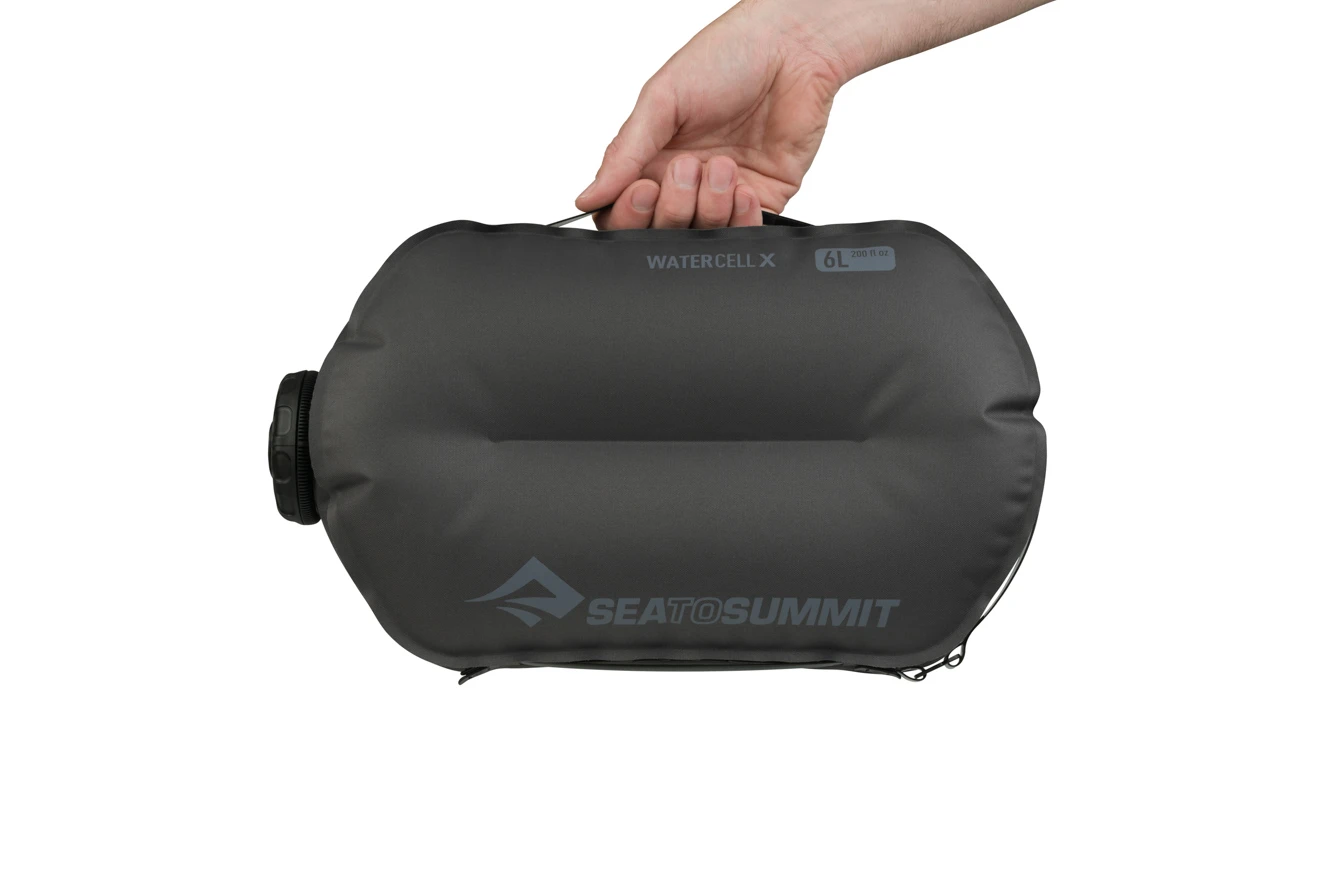 Der Sea to Summit Watercell X ist ein Transportsack für Wasser. Das robuste Materialien und praktische Form machen den Transport einfach. Dank der 3D-Form und dem Baffle-Design im inneren ist die Watercell X besonders handlich, gut zu verstauen sowie einfach zu füllen und entleeren.