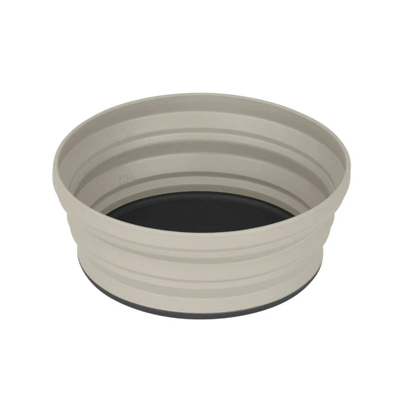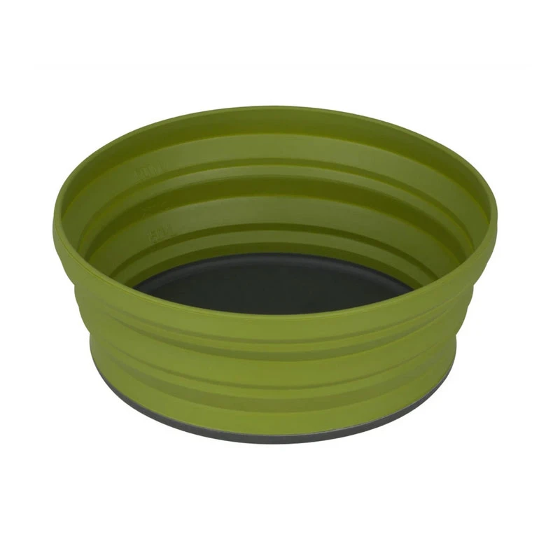 Die X-Bowl besteht aus flexiblem, lebensmittelechtem Silikon und lässt sich flach zu einer kleinen Scheibe zusammenfalten. Somit passt sie problemlos in jeden Rucksack. Der Nylonboden kann als Schneidebrett verwendet werden, wenn die Schüssel umgedreht wird. Aufgedruckte Maßeinheiten auf der Innenseite machen sie zu einem vielseitig einsetzbaren und funktionellen Geschirr.