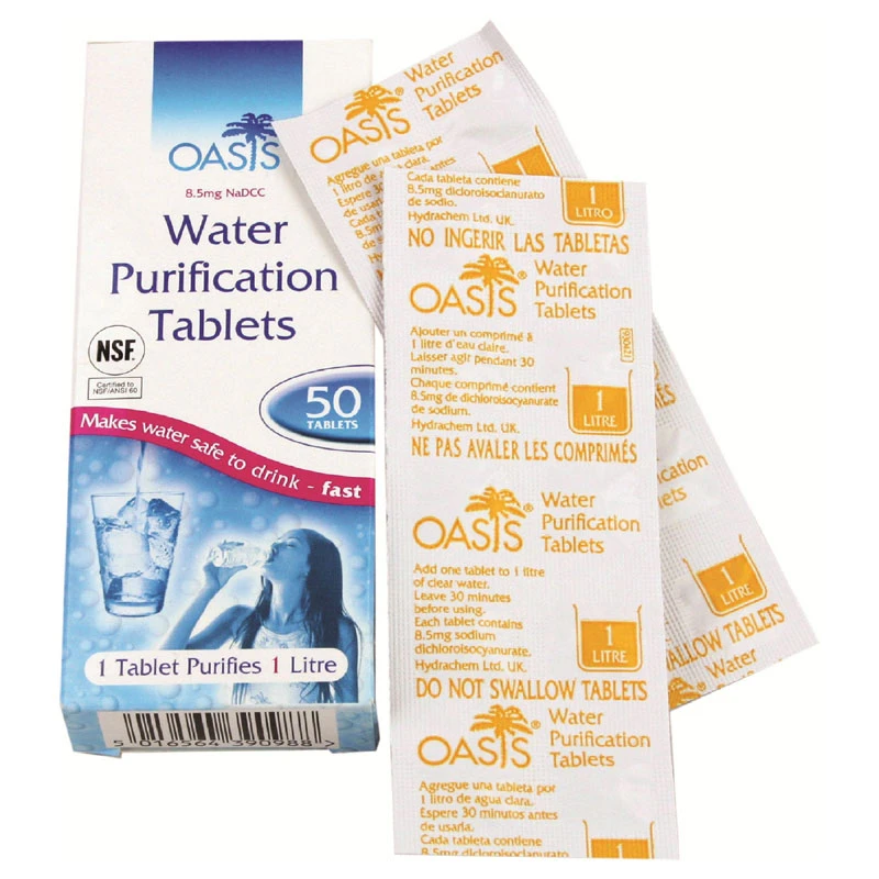 Tabletten zur Wasseraufbereitung funktionieren auf Chlorbasis. Sie eignen sich v.a. für Reisen in Länder, in welchen Trinkwasser keine Selbstverständlichkeit ist. Schützt vor Verkeimung und beseitigt Bakterien und Viren. Behandelt 50 Liter pro Packung (1 L pro Tablette).